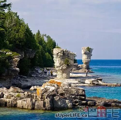 这已经是一年中第二次去布鲁斯半岛游玩了,每次去布鲁斯半岛(Bruce Peninsula)和不同的人都有不同的感受,不过一直不变的是当地的美景和三色湖水带来的震撼。因为每次去都有新发现都有经验的积累,所以决定写个攻略与大家分享。几次都是选择自驾游的方式,一来是行动比较方便,二来时间安排上没那么死板。这次6月初去布鲁斯半岛,天气够晴朗,不过因为温度不是那么高,所以不能下水游泳,不过选择潜水的人还是非常多的。
