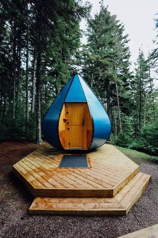 千万别小瞧这个看起来像水滴一样的小木屋,虽然只有6平米的面积,这个小屋却能睡下一家人,木屋中有一张沙发床和一个吊床,会带给你非常难忘的露营体验。这个水滴状的小木屋,目前只出现在芬迪国家公园 (Fundy National Park) 。