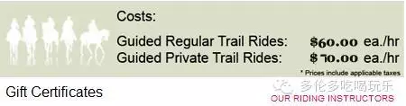 这里的马匹都是经过专业人士严格训练。所以大家可以放心得策马奔腾。这里还有培训班,一周七次课,每节课$73.5。