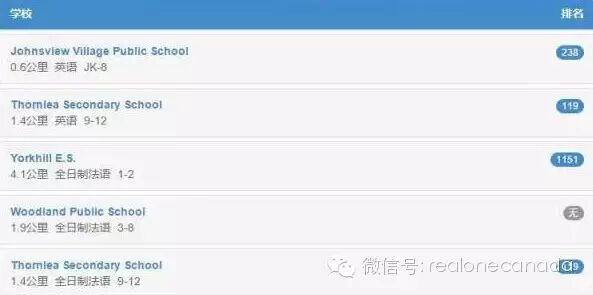 公立高中一所,公立小学二所,教会小学一所;Johnsview Village Public School 小学,学前班到8年级,在全安省3037所小学中排名第238,成绩很好;Thomlea Secondary School 高中以艺术,戏剧音乐,视觉艺术著名,科学和商课成绩也很好,升学率较高,口碑非常不俗。在全安省749所高中排名第119.