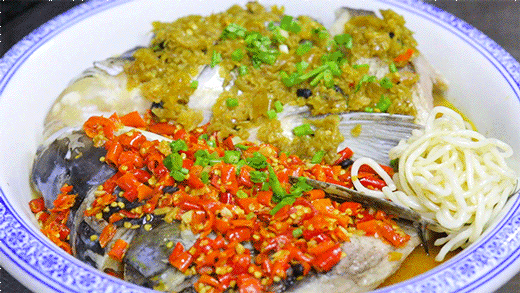 湘菜最典型的代表作之一——剁椒鱼头!新鲜的胖头鱼,配上特选的双色剁椒,颜值甚高啊~