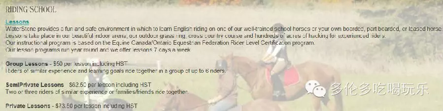 这里的马匹都是经过专业人士严格训练。所以大家可以放心得策马奔腾。这里还有培训班,一周七次课,每节课$73.5。