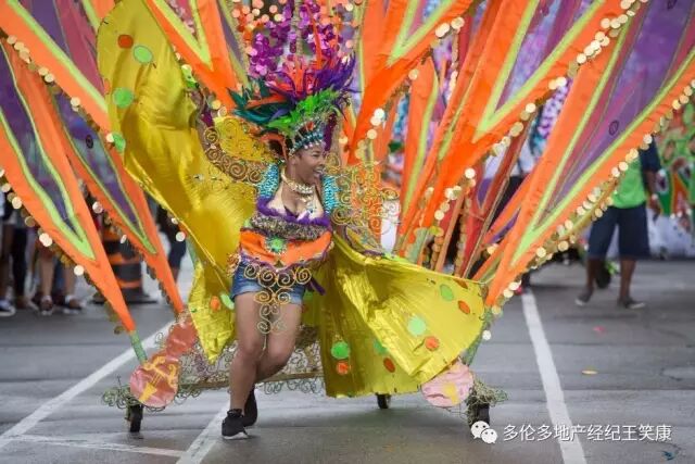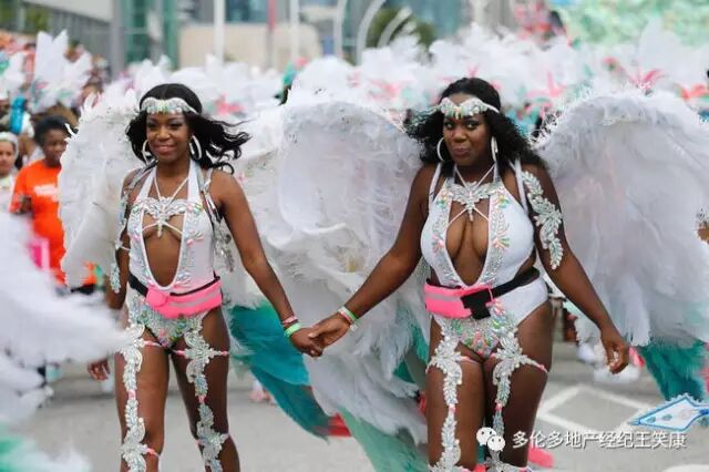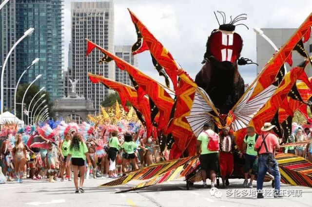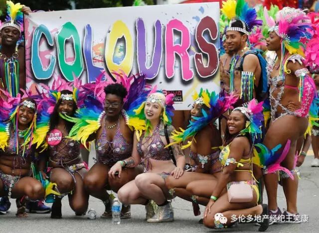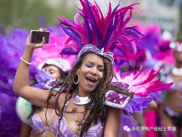 今天(8月5日)上午,有成千上万的充满活力的加勒比狂欢者,身着五彩斑斓和带有漂亮羽毛的传统服装,带着欢笑淹没了多伦多的街道,来参加多伦多第50届加勒比嘉年华的庆祝活动。 多伦多的加勒比嘉年华的庆祝活动远近闻名,每年近一百万人从世界各地来多伦多参加这项活动。 今天的加勒比嘉年华大游行的气氛比以往更精彩和喜庆,从活动开始,老天就忍不住 “ 喜极而泣 ”下了一阵雨,淋湿了参与者的羽毛,但这并没有熄灭人们的热情和兴致。多伦多Downtown今天充满了活力,色彩和欢乐。