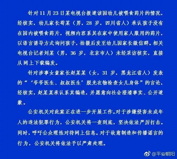 先说说官方发布真相。 我不看结论。结论一概先别看,先看细节,是否有逻辑自洽,是否有漏洞。 就通报中透露的种种细节而言:78名员工的幼儿园。 第三方鉴定机构对“涉事女童”进行人身检查,未见异常。 硬盘因为某库管员强制断电,而造成部分损坏。这句话迅速引起了群嘲。 大家的言下之意是“谁信啊?为啥好死不死,就在这个节骨眼上,硬盘坏了呢?” “硬盘拿来,我给你修复!” 我仔细看了一下通告,原文如下:“目前已恢复的113小时视频,未发现有人对儿童进行侵害。” 严格按照字面意思推敲,应该还在恢复更多的视频资料。 但公共舆论如此急迫,把已经查知的事实公开,也是必要的。 但很显然,从反馈来看,嘘声四起。 现在我说说我对整个事件的看法。(近期我在闭关写书,但此事比较有代表性,多说一点儿。) 一如既往,不站任何一方,只站事实。 这事,在我来看,一开始,那些漏洞百出的“指证”,像艳星的胸围,完全裹不住。而事后官方发布,又象维密的裙子,啥也兜不住。 1、 网帖疯传之际,第一印象:它太煽情。太缺少事实支持。 新闻六大要素:人物,时间,地点,何时,何地,发生过程。它有几条符合? 人物,家长“自述、转述”,和几张模煳的疑似针扎的照片。 性侵?时间呢?地点呢?在幼儿园里发生的,还是幼儿园外发生的? 幼儿的医疗报告,就诊记录,伤情鉴定,体液提取,保存的涉事衣物呢? 喂药片儿?那应该更好取证了,家长自述是孩子拿着两个白色药片回来给家里人看的,那就应该立即保存并送检。来不及送检,把药片拍照上传,自有全网络的药物专家分分钟鉴定出来。(能够产生麻醉、安定作用的药物也就那么几类。) 再后来,看到家长激愤地描述“用十公分长的针管给孩子注射棕色液体”。 基本就可以看出,事情正在象非理性的方向运行。 什么致幻剂敢这样大规模地给孩子注射?你把中国最好的麻醉科专家叫来,你看他敢不敢给一批几十个孩子随时打“麻醉剂”? 对麻醉的个体敏感度差异很大。尤其是儿童麻醉。 一针下去打死了,唿吸衰竭了,直接窒息死亡怎办?引发了呕吐、食物返流,窒息了怎么办? 还有,麻醉剂都会有一个消退期,孩子每天来了每天回家,药剂没消退,孩子昏昏沉沉或者各种说胡话怎么办?呕吐、头疼这些正常反应也可以控制?这个幼儿园还能精确控制致幻剂时间,一早送来了,打完了药剂,下午三点,家长来接的时候,孩子已经药物作用全部消失,活蹦乱跳地回家,身体上没有反应,没有痕迹? 还有药片。 喂孩子吃药是天下最难的一件事。现在为了避免儿童吞吃药片发生窒息事故,儿童药物都做成了滴剂,或“粉末”,各位爸爸妈妈,多少年没见过有”幼儿药片“了? 说甜甜的药片是安眠药的,各位爸爸妈妈不妨去找找,市场上安眠药有没有“甜甜款”。 难道说这个幼儿园中午为了让小孩子睡觉,特意去找药厂定制甜甜款的“安眠药”? 孩子被性侵,到家“晕过去”了,4个小女孩“下体红肿”,还有一个小男孩“肛裂”。到目前为止,只看到了一个小男孩有肛裂的检查报告。小女孩未见。 肛裂是性侵的结果吗?这个要肛肠科医生和儿童医生的联合鉴定。如果这个孩子已经去了医院,如果是高度疑似性侵,医生会出具意见。 还有一种可能,这个年龄段的小朋友里,出现便秘、排便困难导致肛裂,也完全有可能。仍然是需要肛肠科的医生的鉴定。 但从一个小朋友有肛裂-直接推论到发生了性侵,然后推论到大规模性侵,也太不严肃了。 这样的逻辑链无法说服我,所以我一开始不信。 2、 “园长和叔叔爷爷脱光衣服做那些事,孩子们围观……” “叔叔爷爷脱光光,童童也脱光光……” 听起来非常可怕。非常令人震惊,这也导致了此贴爆炸式地流传。 但是,它不符合儿童性侵犯的犯罪常识。 可以说,性侵儿童罪犯的最大的特点就是隐蔽。他们都知道自己的行为是超越伦理而且是重罪,只要走漏一丝风声,就算是在中国,也一样是灭顶之灾。所以,恋童癖罪犯的行为都非常隐蔽,保护伞做得甚至比一般人还要好。 有没有公开猥亵儿童的? 有。 在比较偏远落后的地区,信息传播不发达,一个学校可能就几个老师,一个老师管全班,而且管几年,无人监控,无人监管,老师就跟土皇帝一样,罪恶就会肆无忌惮。就算是这样的犯罪,他也是避人耳目的。 或一对一的关系里,加害者和受害人是一种稳固的监护关系,被害人无法脱离加害者的监控。个别性侵者性侵成了自然,在公开场合也习惯成自然。如南京高铁站猥亵女童案。如重庆市某医院门厅里发生的某男抠摸少女案(后证实为叔侄女关系)。 有组织、有规模的儿童性侵,除非发生在一种禁闭、隔离的集体里。如修道院,如教会,如《熔炉》里的偏远聋哑儿童学校。 在北京、朝阳区、2017年,人人都有手机的情况下,园长组织孩子围观“不可描述”的事,请问,在哪围观?教室?办公室?还是有一个隐秘的地下室,周围挂满了红色的绒布?经警方核实,该园员工有78人之多,78人共同包庇这样重大犯罪而且还能毁掉罪证的可能性极小。只要有一个老师或一个阿姨,一个校工、一个校医,手机随便拍张照片或视频呢?须知,这是一个非封闭的环境。 每天员工上班下班,幼儿接送放学,还会有正常的员工流动。 这样的谣言虽然漏洞百出,经不起细细推敲,但是,简单粗暴有效。传播效力巨大。 就像一个AV视频,粗制滥造,但观者津津有味并且十分投入。 我
