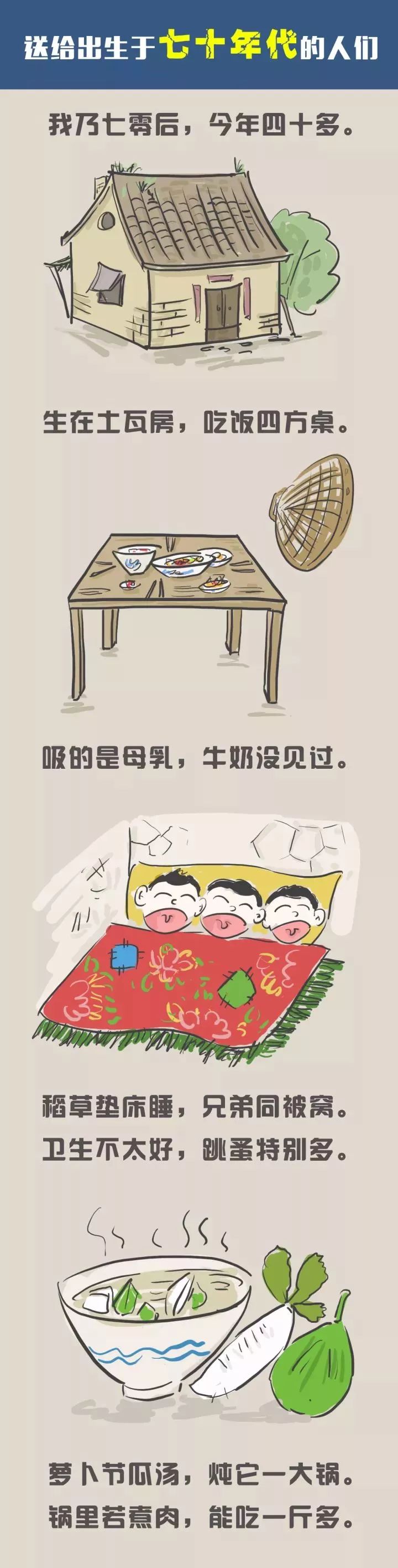 中国正在急速步入“老年人社会”。 因为《老年日报》刚刚宣布: 70后也属于老年人了。 还是一群向往自由的老年人。 别说, 生于70年代还是挺幸运的。 幼儿园、小学自己独立上下学; 不拼爹也能上个大专或大学; 毕业后大都在房价飙升前买了房。 |