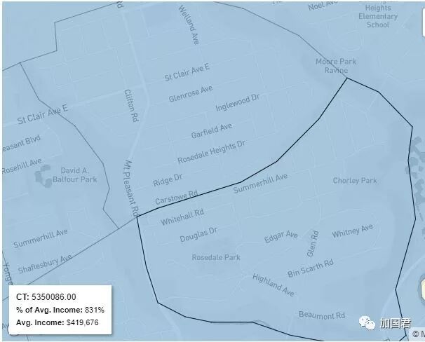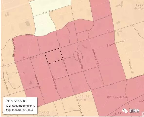 根据加拿大统计局公布的数据,加国君也曾报道过一篇《大多伦多地区华人聚居10大小区》的文章,清楚知道华人原来聚居在大多伦多这些小区,那到底多伦多华人普遍的收入如何呢? 50%多伦多居民年收入高于$5万加元 根据普查数据,加拿大人收入中位数为47,487加元。 大多伦多地区个人收入中位数则是50,479加元,换言之,50%大多伦多年收入高于$5万加元 多伦多收入最高前三位均属豪宅区 收入最高的是玫瑰谷(Rosedale)豪宅区,区内个人收入中位数近42万加元。 第二位是Yorkmill社区,个人收入中位数超过33万。 第三位是另一个豪宅区Bridle Path,区内居住的人士非富则贵,超过一半人年收入近32万。 这两大豪宅区有很多过千万以上的大房子,每年地税就需要交10万以上。 华人聚居区收入排行榜 这里称的华人聚居区指根据统计数据,华人比例至少占三分一以上的小区。 10、士嘉堡北、太古广场一带 这区是大多伦多地区华人聚居密度最高的地区,华人比例高达8成。 图解:蓝色:7万以上;浅蓝:6万-7万;浅黄:4万-6万;橙色:3万-4万;红色:3万以下。 可见,无论是万锦的Milliken社区,还是士嘉堡北大部分社区,均属于最低的红色区域,意味着个人年收入均在3万以下。 图:太古广场2楼 9、多伦多唐人街 多伦多市中心唐人街一带,华人所占的比例只有38%,唐人街的华人密度已远远不如万锦、士嘉堡北。 区内个人收入中位数为$33,257加元。 8、万锦downtown、南於人村 万锦downtown近几年新建,62.8%是华人,南於人村华人高达72%。 统计数字显示,区内个人收入中值在3.8万加元。 7、Berczy、Wismer以及Markville 万锦华人密度最高的小区是Berczy,区内个人收入在4.2万元。 南面的markville社区则在5万附近,东面的Wismer社区则在4万附近。 6、万锦WoodBine & Major Mack 万锦WoodBine & Major Mack东北角小区叫Victoria Square,房子近10多年才陆续建起,但据去年的统计数据显示,区内已有12000人居住,72.8%均是华人。 而该区50%以上的个人收入高于5万加元 5、於人村 於人村main街附近华人比例只占35%,但靠近warden以东一带则占64%,Warden以东万锦市府一带华人则占高达74%! 图:於人村too good湖 万锦於人村以main街附近一带收入最高,个人收入中值为7.1万;Warden和Hwy7两边的华人聚居区收入也高达5.3万。 4、康山(Thornhill) Bayview & Steeles东北角一直到407&Leslie一带的康山小区划归在万锦管辖。 该区华人人口大约占三分之一,其中以407&Leslie东北角最多,华人比例高达36%。 而该区一半以上的个人收入超过6.3万。 3、富豪山庄、Rough Woods 列治文山富豪山庄(Bayview Hill)社区以Spadina Rd为界,西面华人比例51.29%,一半人收入超过6.3万加元。 Spadina Rd东面华人比例高达72.93%,一半人收入超过5.9万加元。 图:富豪山庄东北角新屋,2年前需要提前2个星期排队抢购。 富豪山庄以北的Rough Woods的个人收入中位数在4.5万 2、北约克Bayview Village及惠柳第区 北约克Bayview & Finch一带,华人人口众多,其中Bayview以西的惠柳第(Willowdale)区,华人比例高达45%;Bayviw以东的Bayviw Village则占35%。 根据普查,Bayviw Village小区中,近一半以上的个人收入超过7万加元以上。 而惠柳第的个人收入中位数在在6万。 1、万锦Angus Glen 及Cachet豪宅区 万锦Angus Glen小区指,16街以北、Major Mackenzie以南,Warden以东至肯尼迪的区域,该区人口总数4215人,其中华人比例高达57.41%。 Cachet小区在Angus Glen小区以西,北面的豪宅区属于万锦市最豪华的一个小区。Cachet的个人收入在5.4万左右。 根据普查数据,Angus Glen小区50%的个人收入超过$77,827加元,在所有华人聚居区中收入最高。 该区著名的高尔夫球场,未来数年将会建造多2400间房屋,增加大约5000人。 可见,海外华人收入并不见得很高,而每月支出却非常高,不但托儿费用、物业税高昂,保险、手机上网费还是全球最贵。 在加拿大活下去的确不容易 祝愿大家2018年生活会更好!