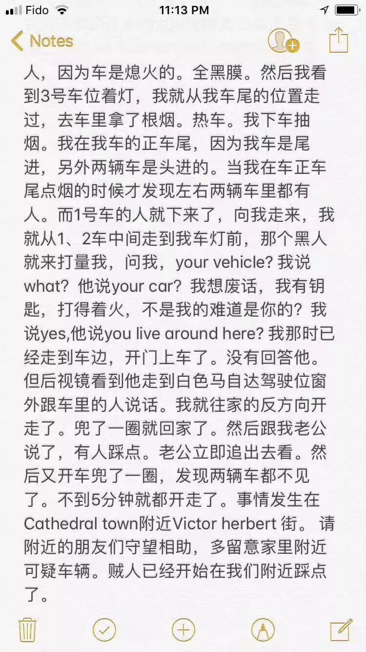 有家住万锦的妹子爆料称昨晚在家门口遭遇惊魂一刻! 出去停车的时候没拿手机没戴眼镜…… 结果竟然遇上了来踩点的犯罪团伙!