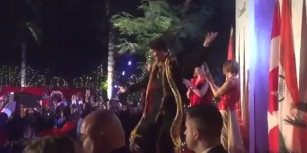 在加拿大驻印度高专署的晚宴上,杜鲁多尽情地跳起了印度传统舞蹈Bhangra舞:
