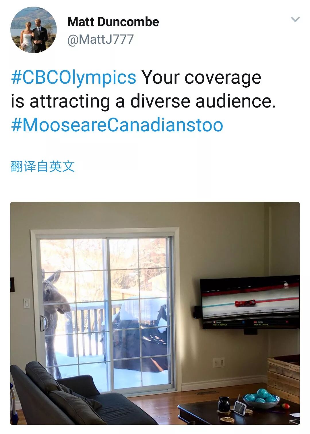 不过,大多数时候,人类还是可以和动物和平相处的。没准儿什么时候,就会有一只这样的麋鹿,跑到你家门口跟你一起看电视。