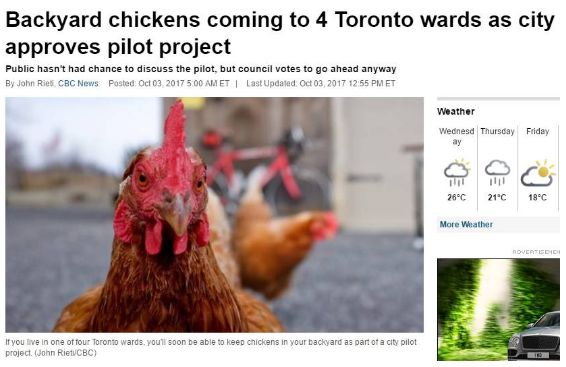 多伦多某些社区现在还在试点养鸡,一家可以养四只母鸡,这还不得把狼都招来?