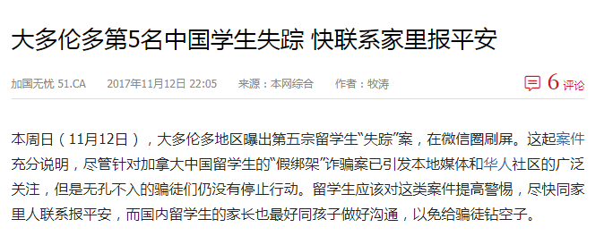 而且孩子不去上学还能去哪呢?王先生对此表示十分怀疑。Qian Jie在王先生家生活了4年左右的时间,家里人根本没有发现过任何异常。 而且,据王先生透露,今年春节前,孩子还跟他和他太太表示,自己还有6门课要学,今年就可以正常毕业了。 话说,为什幺小编感觉这起留学生失联案和去年那起5名留学生相信诈骗分子,相继离家躲藏,结果引发留学生社群恐慌的案件很像?