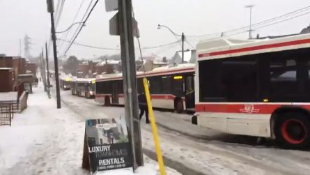 别说小跑,这种路连常年开公交的老司机都hold不住,Dufferin Street 北部的一处小坡足足挡住了8辆TTC公交车。 原因令人尴尬: 爬!不!上!去!