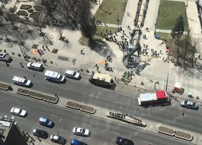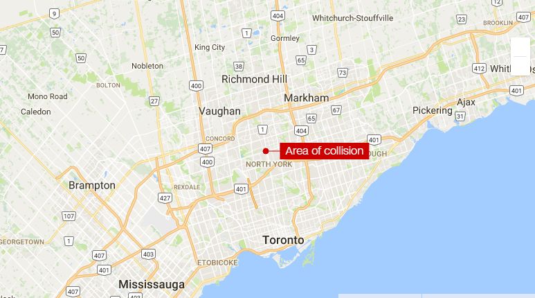 事发现场俯瞰 据最新消息:加拿大总理杜鲁多在渥太华国会被保守党议员和记者团团围住,就今日在多伦多发生的车祸质问他的难民政策。 |
