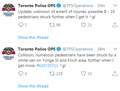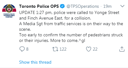 随后多伦多警方Twitter发布消息,称现场竟有8-10人被撞!!!