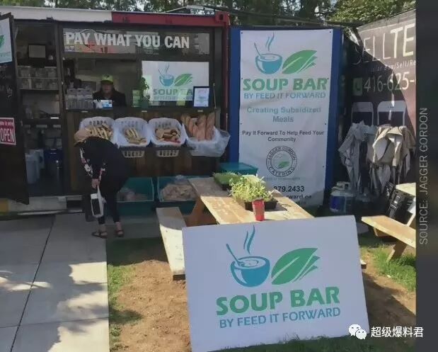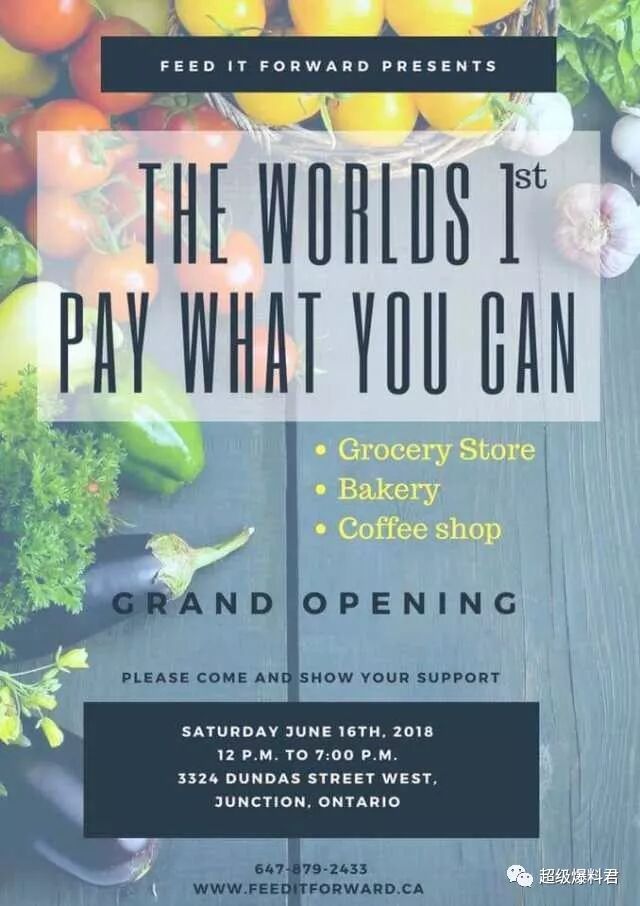 Feed It Forward是一家致力于解决食品安全隐患的组织,在多伦多将开设一家“你能给多少钱就看着给吧(实在没钱也没事)”的杂货店,目前为世界首家。 和本地的其他超市不太一样,这家超市虽然看起来好像并不是以营利为目的,但是储藏却相当丰富,不仅有面包房,咖啡吧台,专门喝汤的地方,还售卖在Whitby的Greenwood农场种植的农场新鲜水果蔬菜。 这个杂货超市可谓是非常有格调了,首先是选址,在位于3324 Dundas West的The Junction地区,而且这家店旨在做到相当环保,不希望有任何浪费和废品出现,所以将实施BYOC计划,记得自己带袋子去买菜。 如果有多的浪费呢,Feed It Forward都会与本地各种机构合作,将这些浪费合理回收再使用等,并且建立社区屋顶花园,生态墙,城市无障碍种植生长空间等,志愿者们可以为社区种植有机蔬菜。 Feed It Forward之前开设的的汤吧 Feed It Forward的创始人以及行政总厨Jagger Gordon表示,顾客只需要支付他们可以支付的费用,如果不能支付,他们仍然可以免费获得有营养的食物,客户还可以选择向有需要的人支付费用。 这家独一无二的杂货超市将于本周六6月16日中午12点面对公众开业,营业到晚上7点。 开业日期:6月16日星期六 时间:中午12点到傍晚7点 地址:3324 Dundas Street West 网址:https://feeditforward.ca/