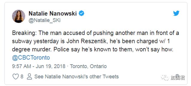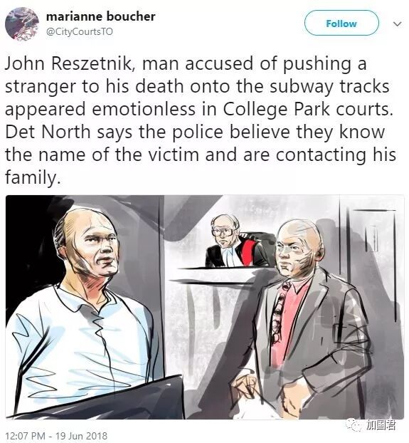 多伦多昨日(6月18日)发生一件震惊整个加拿大的惨事,一名市民在等地铁的时候竟被陌生人推下地铁线撞死。市民要求多伦多要学习北京、上海广州一样的屏幕门来保障自身安全,但市长庄德利称非常赞成这项工程,但却称需要等TTC的研究报告,并称至少需要$10亿加元以上的费用。 白发亚裔男遭人推下地铁线惨死 昨日(6月18日)早上10:15分,多伦多Bloor-Yonge的地铁站发生惨案,一名50-60岁之间的路人被人推下月台,遭到入站的列车撞击致死。嫌疑人被确定为一名57岁多伦多男子,名为John Reszetnik。 根据昨日最初的报道,受害者为一名20岁出头的年轻人。最新的消息,警方进行了更改,受害者实为一名50-60岁之间的亚裔男子。 受害者当时身穿白色棒球帽和短裤,并有白色头发和白色眉毛。警方表示已经知道受害者身份,并且已经通知其家人。 (Bloor-Yonge地铁站遭到封锁) 事发经过 根据负责此案件的警方侦探Rob North表示,受害者和嫌疑人当时都在等待地铁,两人曾发生轻微争执,但当列车进站是,嫌疑人忽然把受害者推下月台,被一辆2号线上往东行驶的列车撞到。紧急送往医院后不治身亡。 (侦探Rob North) Rob表示警方反复查看当时的监控录像,直指疑犯推人的动作发生的非常快。 警方表示受害者和嫌疑人并不认识。 一名目击者目睹事件发生,受到了惊吓并且情绪激动。 嫌疑人被确定为57岁的John Reszetnik。嫌疑人离开后有回到现场,警方在20分钟之后在现场将其逮捕。 在周一晚上的新闻发布会上,警方表示嫌疑人有案底,但并未透露是如何具体所犯何事,不过警察称不是严重罪案。 庭上疑犯毫无悔意 嫌疑人John Reszetnik已经被控以一级谋杀罪名。并于今天过堂。 (嫌疑人今日出庭的描绘) 在法庭上,疑犯目无表情,一副毫无悔意的样子。 据警员表示,目前还没排除是因为心理问题造成的作案动机。 以往类似事件 相比于把人推下站台,选择跳下月台自杀的人要更多。 上一年,则有19人在TTC地铁站自杀,另外有26人尝试在地铁站自杀。 2017年4月份,有人尝试于Dundas站自杀,被另一名路人乘客成功劝阻。 而上一次发生有人被故意推下月台,从而造成事故发生是在1997年的9月份。当时一名23岁无辜的年轻人被一名41岁的亚裔Herbert Cheong推下月台。 Cheong被控一级谋杀,后因主动认罪降为二级谋杀。Cheong被确诊患有精神分裂,被判终身监禁,前15年不允许假释。 市民高呼建屏蔽门 事情发生了,就要想办法预防了。地铁中为预防乘客掉下铁轨,用的最多的就是屏蔽门门。 国内大城市北上广深,大多数的地铁站都安有全高或者半高式的屏蔽门。而多伦多的地铁并没有安装这些屏蔽门。 (广州地铁) (深圳地铁) (多伦多地铁) 这一点自然也有网友吐槽了↓ 网友:“上海和北京这两个大城市,地铁站都有屏蔽门安装。小多伦多呀,是时候成长为大城市了。” 市长称要10亿以上 多伦多市长庄德利今天回应,他非常赞同安装屏蔽门这个方案,不过最大问题是价格成本。需要10亿加元来为全部地铁站加装屏蔽门,主要因为一些旧的地铁站需要进行大翻新才能进行安装,一些新的站台则不需要。 市长庄德利表示,他正在等待公车局TTC研究结果,TTC目前还在研究在地铁站建造安全屏障门的可行性。 TTC发言人Brad Ross称,该研究预计将在2020年前完成。TTC董事会的Joe Mihevc称屏障门有非常多好处,但是每个站的成本大约在1000万到1500万加元之间。 市长庄德利说:“我会等待那份报告,因为有市民失去生命时,我们应该对负责……并且认真对待。” 尽管价格太高,市长表示还是值得考虑。 对于TTC称费用高的问题,用网友称:“可以优先考虑在最繁忙的接驳地铁站安装屏蔽门,例如Bloor-Yonge、Union以及St.George等站, 这怎么需要花费10亿加元?” TTC要到2020年完成可行性研究报告,如果再等10亿资金,请问什么时候可以完工?市民还需要担惊受怕多久?