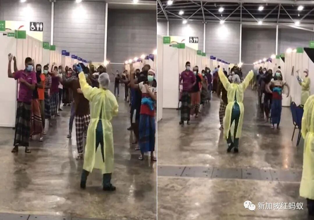 | 新加坡博览中心改建成社区隔离中心之后,住进了许多症状轻微、正在康复中的客工。 昨天一名叫“Raziff Hamid”的网民上载了以下这个好玩的“手舞足蹈”短视频时写道,大家很可能是听到黄循财部长说,到了5月底预计约有2万名客工就能出院,顿时在黑暗中见到了曙光而闻歌起舞! 今天,谜底终于揭晓。 这群在新加坡博览中心集体跳舞的医护人员和患者,不是在寻欢作乐,更不是因为听说月底有2万名客工能出院而高兴得手舞足蹈。 据《海峡时报》报道,他们只是在进行日常的保健康复运动。 负责博览中心医疗服务的兀兰医疗保健园(Woodlands Health Campus)告诉《海峡时报》,这是旗下的医护人员发起的健身运动。 视频里站在前方,全服武装穿着个人防护配备、积极地引导客工和其他患者一起做出不同舞蹈动作的,就是保健园的一名女护士。 开展这项运动的目的,主要是为了让在这个社区护理设施接受治疗的病患能有机会活动筋骨、放松心情,同时也让医护人员有机会观察他们的唿吸是否正常。 结束运动后,医护人员会帮患者测量吸氧量,找出那些可能需要医疗帮助的患者。 兀兰医疗保健园的发言人说: “视频里拍到的是其中一款集体运动,它们通常历时15分钟,每天会在两个时段进行。这些日子以来,得到的反馈都很正面,参与的人也不少,蛮正面的。” 目前新加坡博览中心有10个展览厅已经改建成社区隔离中心,一共有8000个床位,让那些冠病症状较轻微的低危患者入住隔离治疗。 陈笃生医院:教客工们拉筋放松 《联合晚报》今天也报道说,陈笃生医院的物理治疗师在观察到被送到检验中心的客工通常都得坐在椅子上等待数小时,对接下来的流程显得困惑不安甚至出现焦躁情绪,于是决定主动引导他们集体做拉筋运动。 这名物理治疗师林定智(27岁)受访时说:“我希望透过简单的运动帮助他们松松筋骨,也提起他们的精神。这也确实奏效了,客工们虽感到害怕,却全情投入拉筋运动。” |