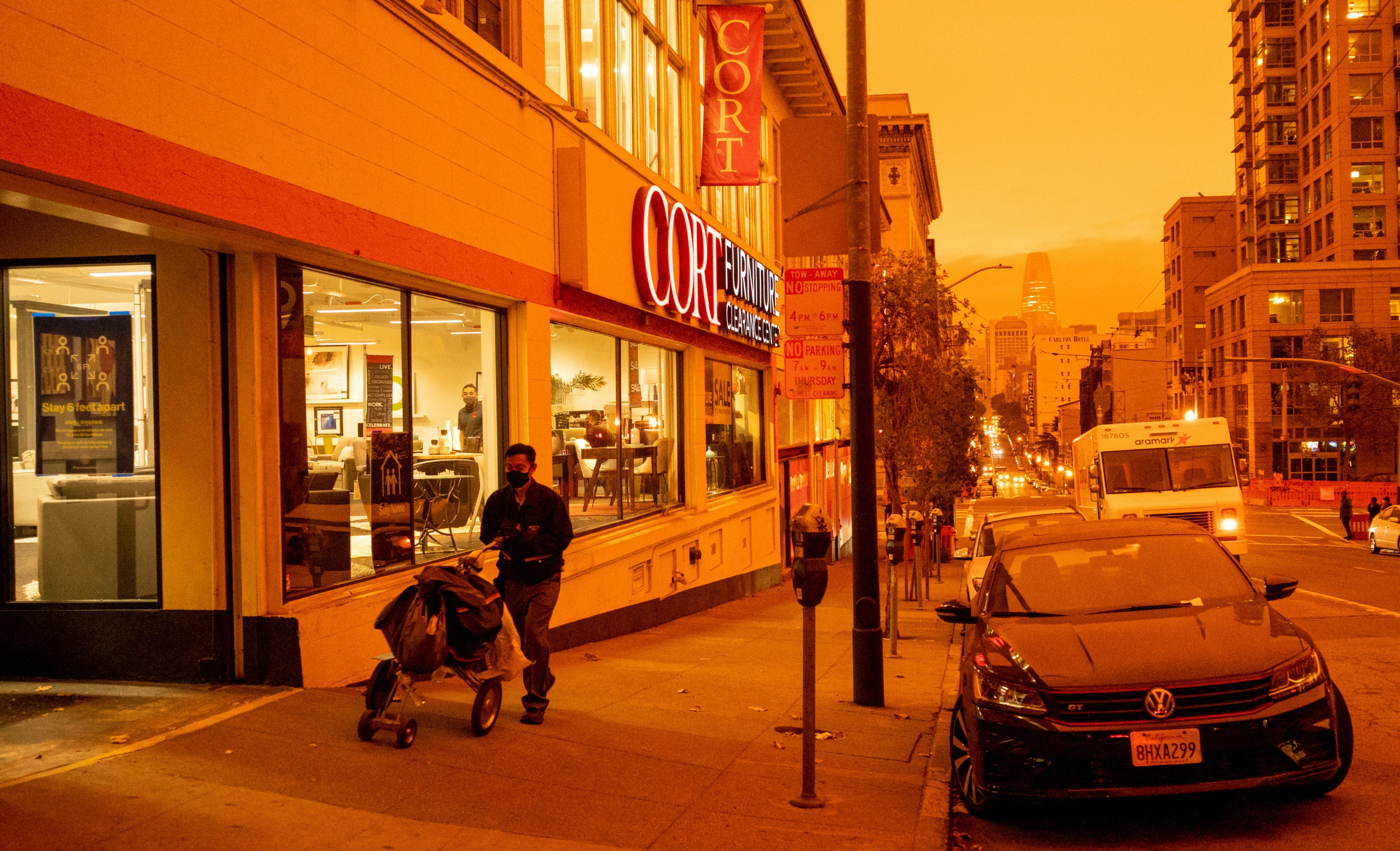 美国加州(California)受热浪影响,连日来持续引发多宗山火,造成严重破坏;加州截至9月10日至少有11人死亡,逾230万英亩土地被烧毁。 大火造成烟雾浓罩三藩市、奥克兰(Oakland)和柏克莱(Berkeley)地区,天空被染成一片橙红色,更有灰烬落下。美国有线新闻网络(CNN)形容,当地犹如置身火星,天色就像夜晚一样。 加州三藩市的市面在9月9日变成一片"橙红色"(Reuters) 图为9月9日,位于美国奥罗维尔(Oroville)的比德韦尔巴大桥(Bidwell Bar Bridge)后方山上出现熊熊烈火。(AP) 图为9月9日一名男子在美国三藩市(San Francisco)的多洛雷斯公园(Dolores Park)拍照,天空被大火的浓烟染成橙黑色。(Reuters) 图`为9月9日大火蔓延到美国加州布尤特县(Butte County),火焰从房屋中喷出。(Reuters) 图为9月9日消防员扑灭了美国奥罗维尔湖 (Lake Oroville)附近的火灾。(Reuters) 图为9月8日大火蔓延到美国弗雷斯诺县(Fresno County),便利店全被烧毁,只剩下一些桌子和椅子在门外。(AP) 图为8月24日救援人员在美国米德尔敦(Middletown)附近洒水救火。(Reuters) 图为8月24日美国加州一只山羊在大火下丧生。(Getty) |