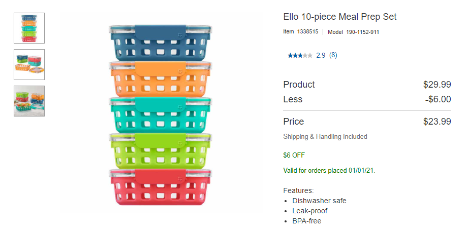 Ello 玻璃碗10件套:原价$29.99,折扣$23.99,省$6