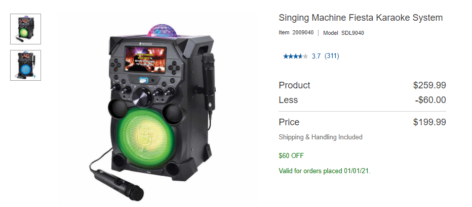 卡拉OK机:原价$259.99,折扣$199.99,省$60